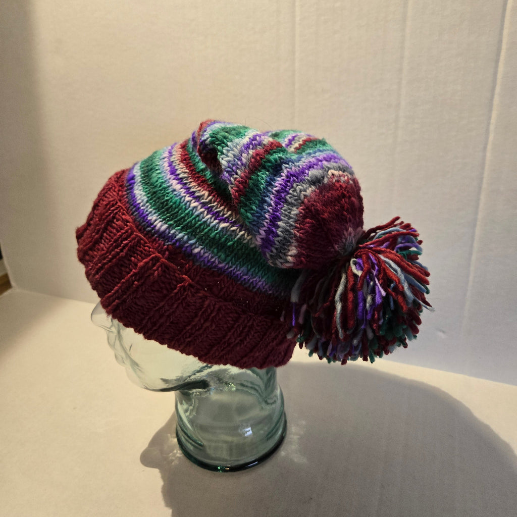Hats are hand crafted from hand spun natural and hand dyed fibers.